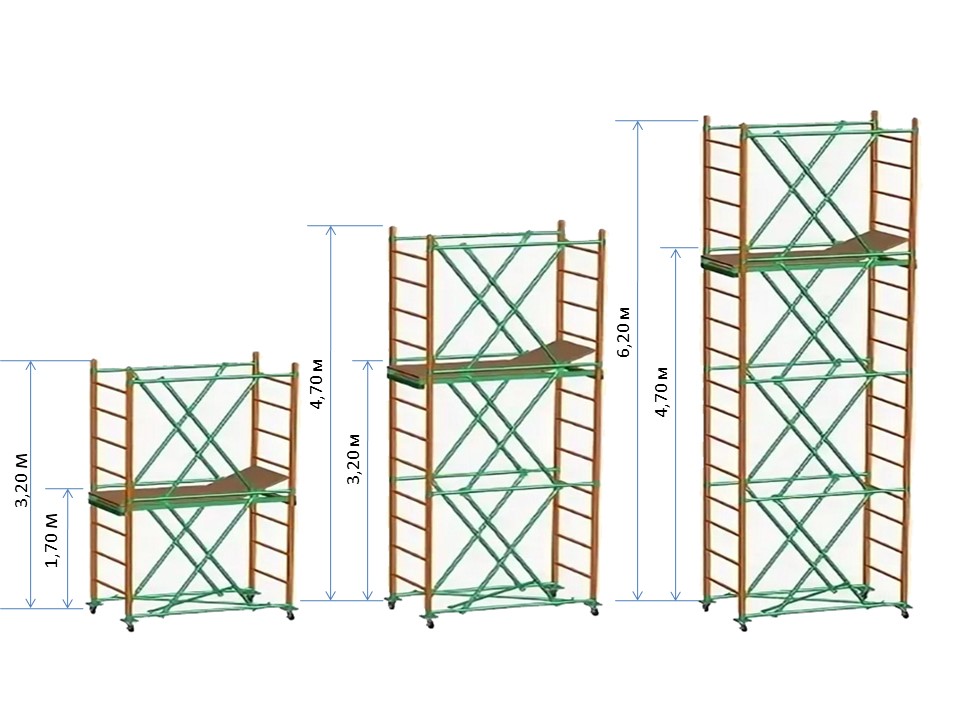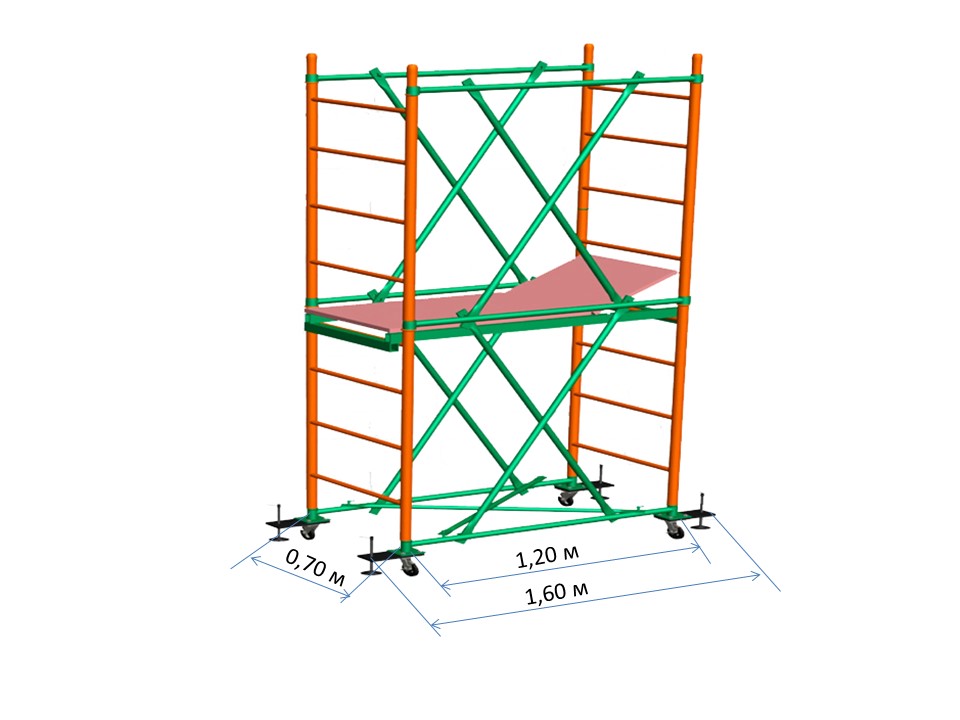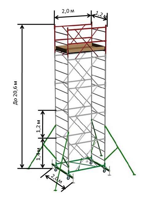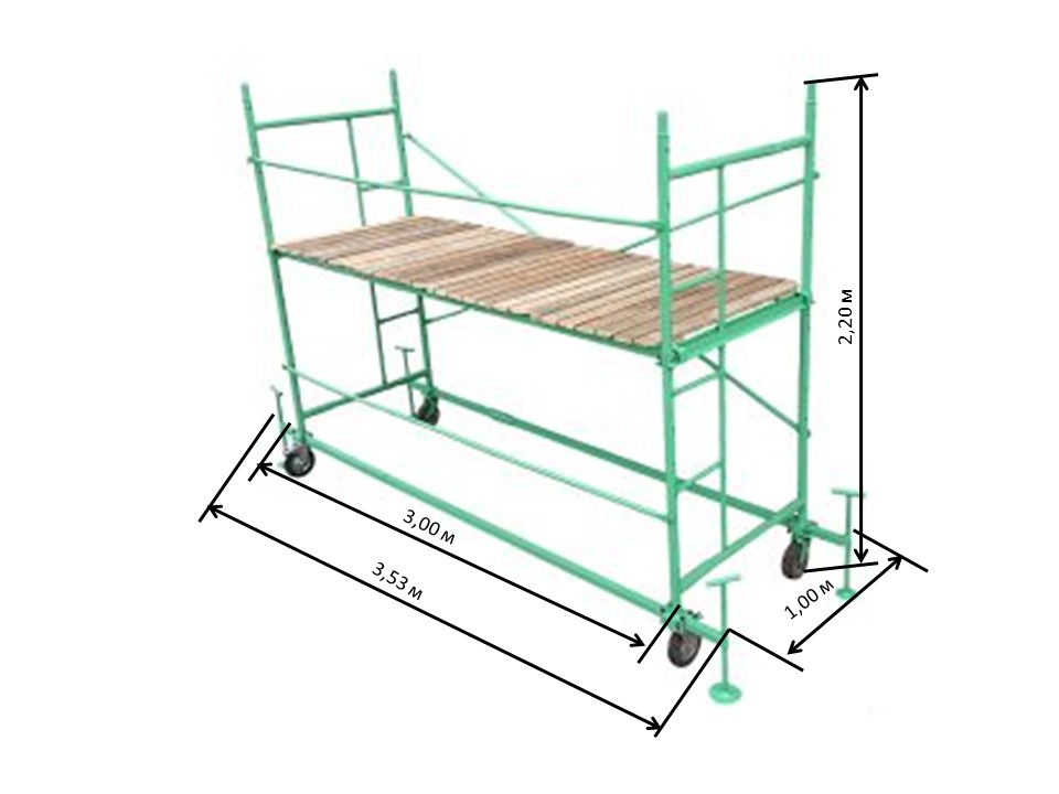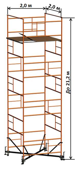 Технические характеристики передвижной вышки на базе строительного комплекта лесов: