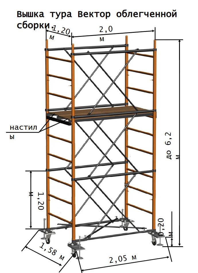 Технические характеристики вышки-туры ВЕКТОР облегченной сборки: