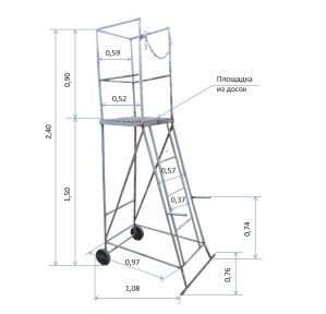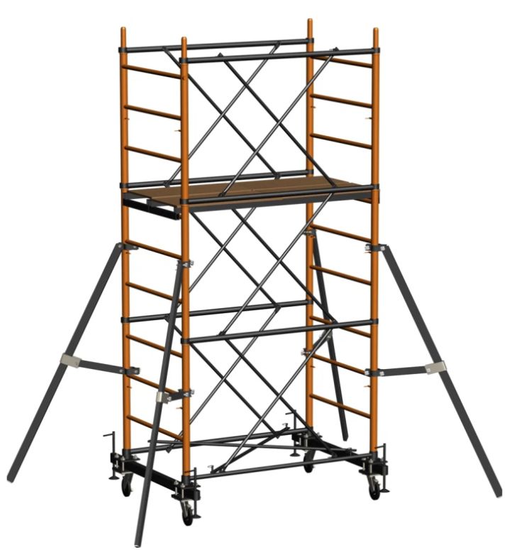 - Мобильность - 4 колеса, 2 из которых оснащены тормозом для их блокировки и неподвижности вышки.